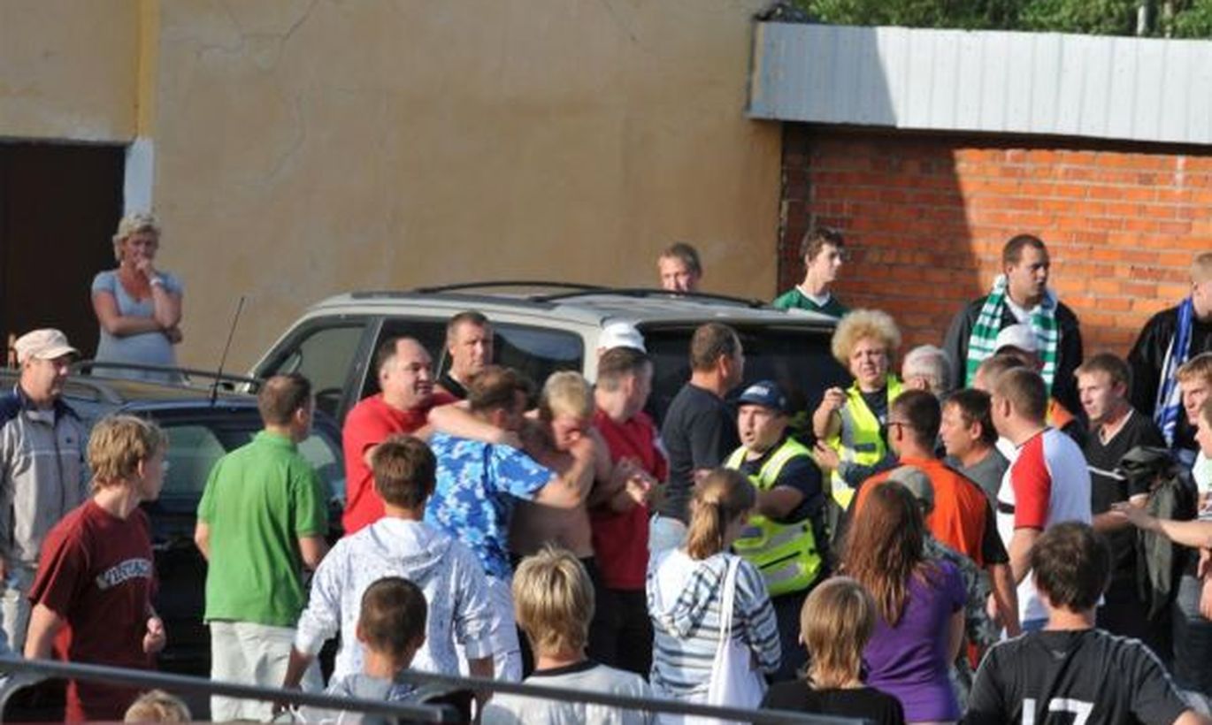 FC Flora ja Sillamäe Kalevi fännide vahel läks mullu augustis kähmluseks. Kakeldi nii staadionil, kui väljaspool seda FOTO: www.sportiv.ee