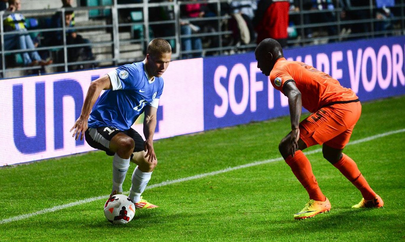 Henrik Ojamaa (vasakul)kohtumises Hollandi vastu FOTO: Mihkel Maripuu